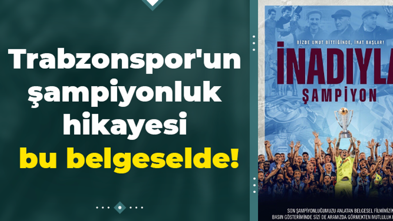 "İNADIYLA ŞAMPİYON" adını taşıyan belgesel film, Trabzonspor'un mücadele dolu sezon boyunca nasıl adım adım zirveye yükseldiğini, oyuncuların çabaları ve teknik ekibin stratejileriyle nasıl zafere ulaştığını izleyicilere aktaracak. Taraftarların tutkulu desteği, kulüp yönetiminin özverili çalışmaları ve futbolcuların kararlılığı, bu başarıda önemli bir rol oynamıştır.