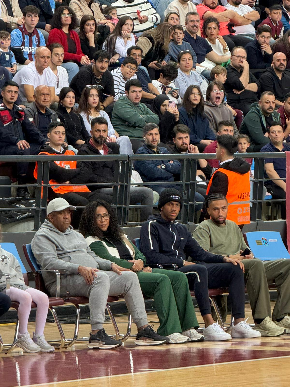 Tim Jabol-Folcarelli ve Felipe Augusto, Trabzonspor Basketbol Takımı’nın Beşiktaş GAİN’i konuk ettiği karşılaşmayı Hayri Gür Spor Salonu’nda takip etti. Trabzonspor kaptanı Okay Yokuşlu da eşi Melisa Kerman Yokuşlu ve Dora Yokuşlu ile karşılaşmayı takip edenler arasında yer aldı. Ozan Tufan ve Rojin Haspolat da çocukları Aren Tufan ile tribünde takımı destekledi. Trabzonspor taraftarları karşılaşmayı takip etmeye gelen futbolculara yoğun ilgi gösterdi.
