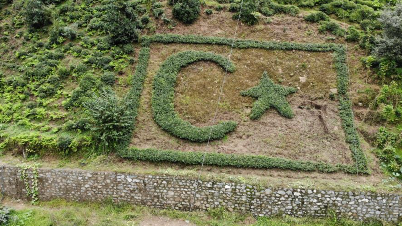 Rize'nin Çayeli ilçesine bağlı Çeşmeli köyünde yaşayan Şevki Yılmaz Gürel, babası Adem Gürel'in düzensiz olan bahçesinde bir peyzaj çalışması yürüttü. Önce taş duvar yaptığı bahçede sonra toprak zemini sağlamlaştırdı. Sonrasında da üzerine odun çubuklardan bir Türk bayrağı çizdi. Çubukları referans olarak kullanan Gürel, babasının ürettiği çay fidanlarını aldı ve bu çubuklarına arasını özene özene doldurdu. Fidanlar biraz büyüyüp kendine geldiğinde ise ortaya muhteşem bir Türk bayrağı çıktı. Şevki Yılmaz Gürel'in il dışındaki işi nedeniyle ise bahçenin bakımı babası Adem Gürel'e kaldı. Baba Gürel ise gururlu görevi oğlundan seve seve devraldı.