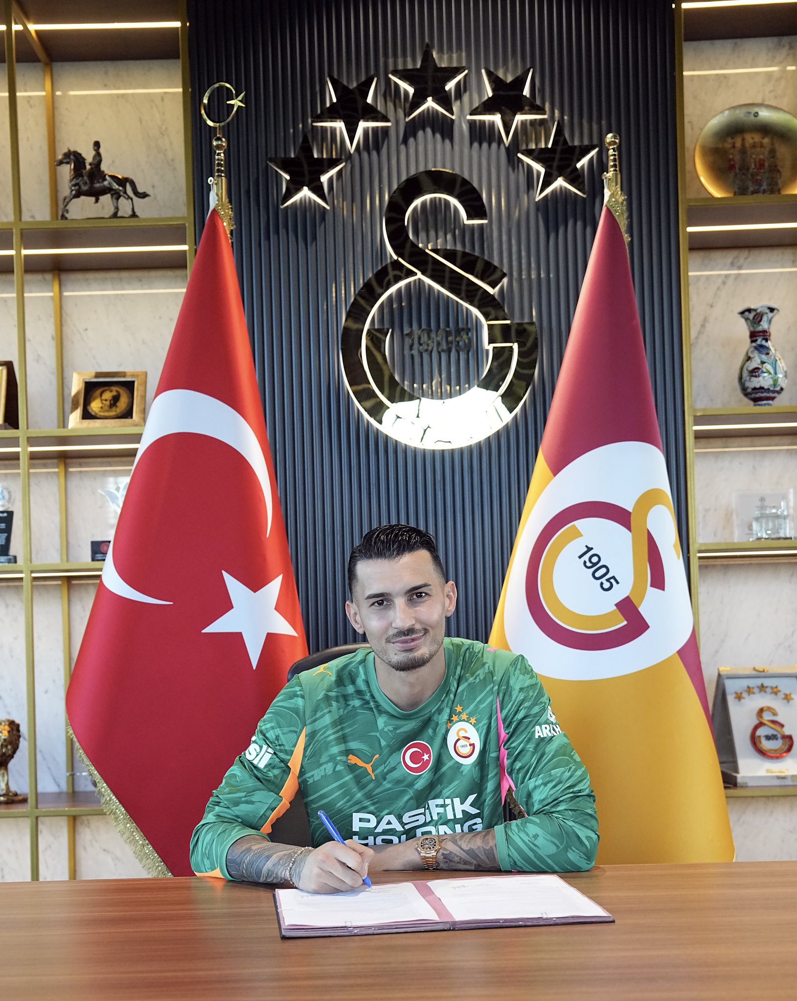 Burada olduğum için çok mutluyum. Terimin son damlasına kadar Galatasaray için mücadele edeceğim. Büyük başarılara ben de yardımcı olacağım." ifadelerine yer verdi.