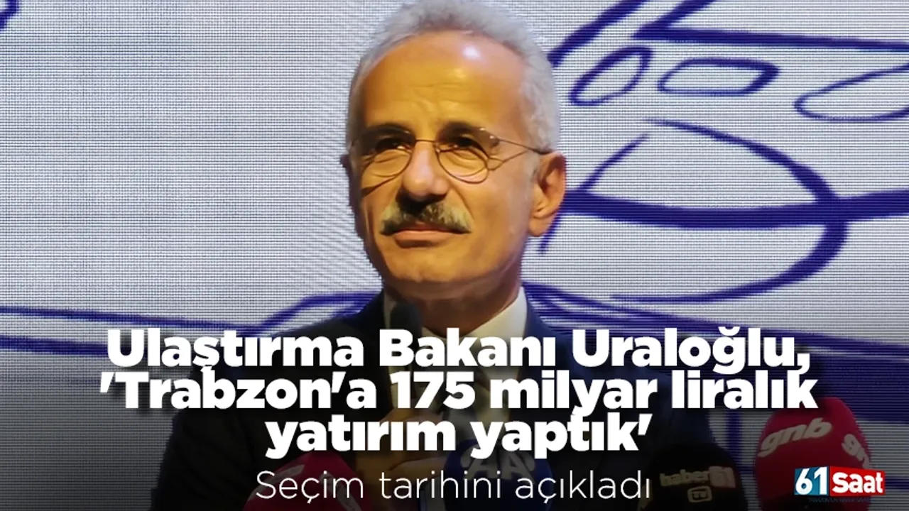 Uraloğlu, ulaştırma alanında Trabzon’a yapılan toplam yatırım miktarının 175 milyar lira olduğunu belirtti. Karayolu ve raylı sistemler dahil tüm alanlarda yatırım yapıldığını kaydeden Uraloğlu, "Bölünmüş yol uzunluğumuzu 56 km’den 265 km’ye çıkardık. Tünel uzunluğu ise 600 metreden 63,6 km’ye ulaştı. Avrupa’nın en uzun, dünyanın da en uzunlarından biri olan 14,5 km uzunluğundaki Zigana Tüneli'ni hayata geçirdik," dedi.