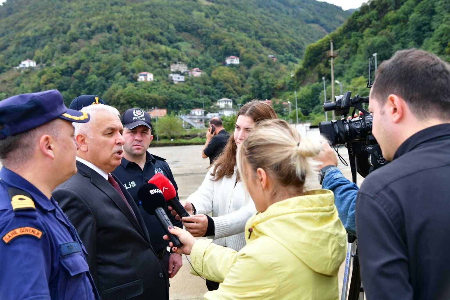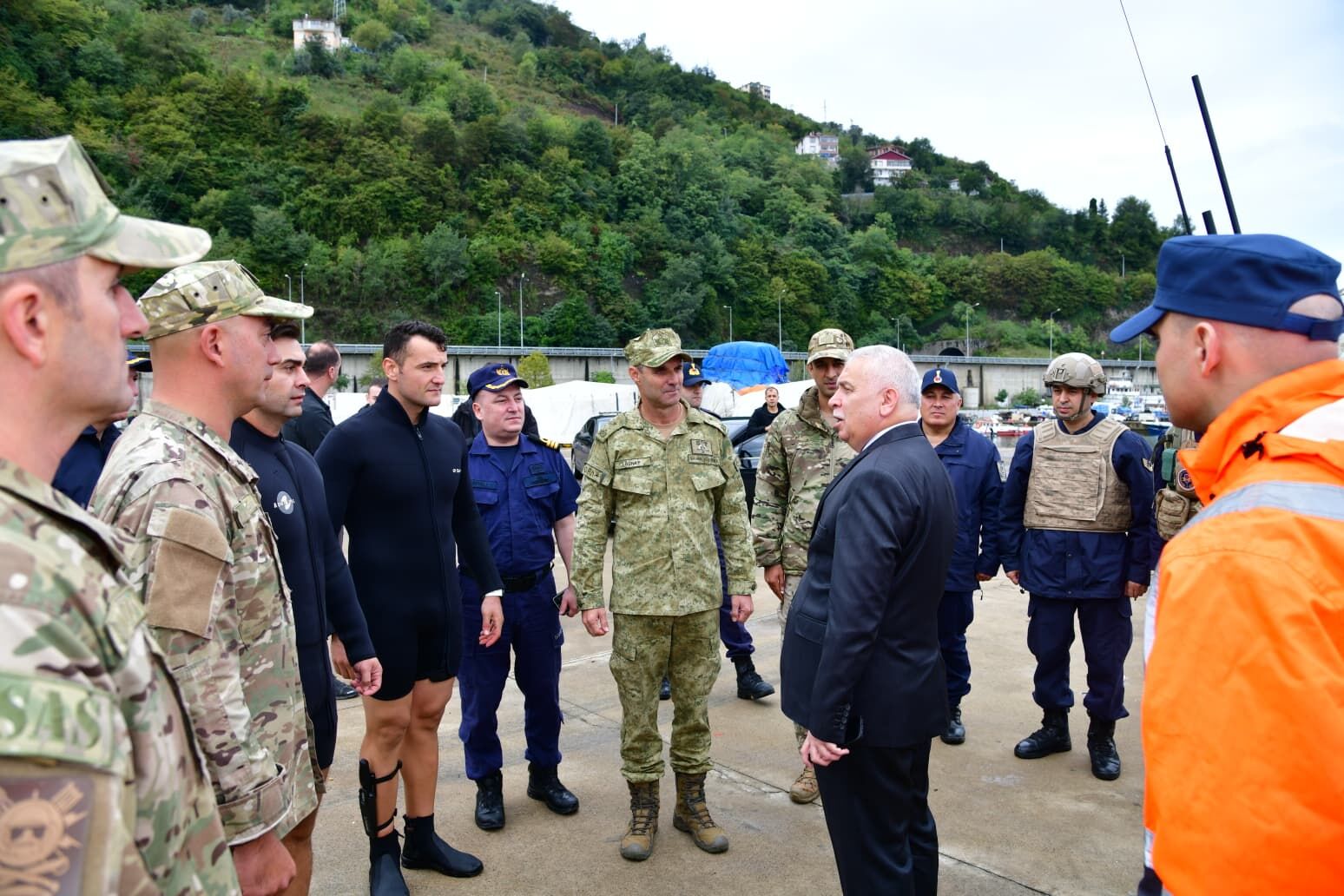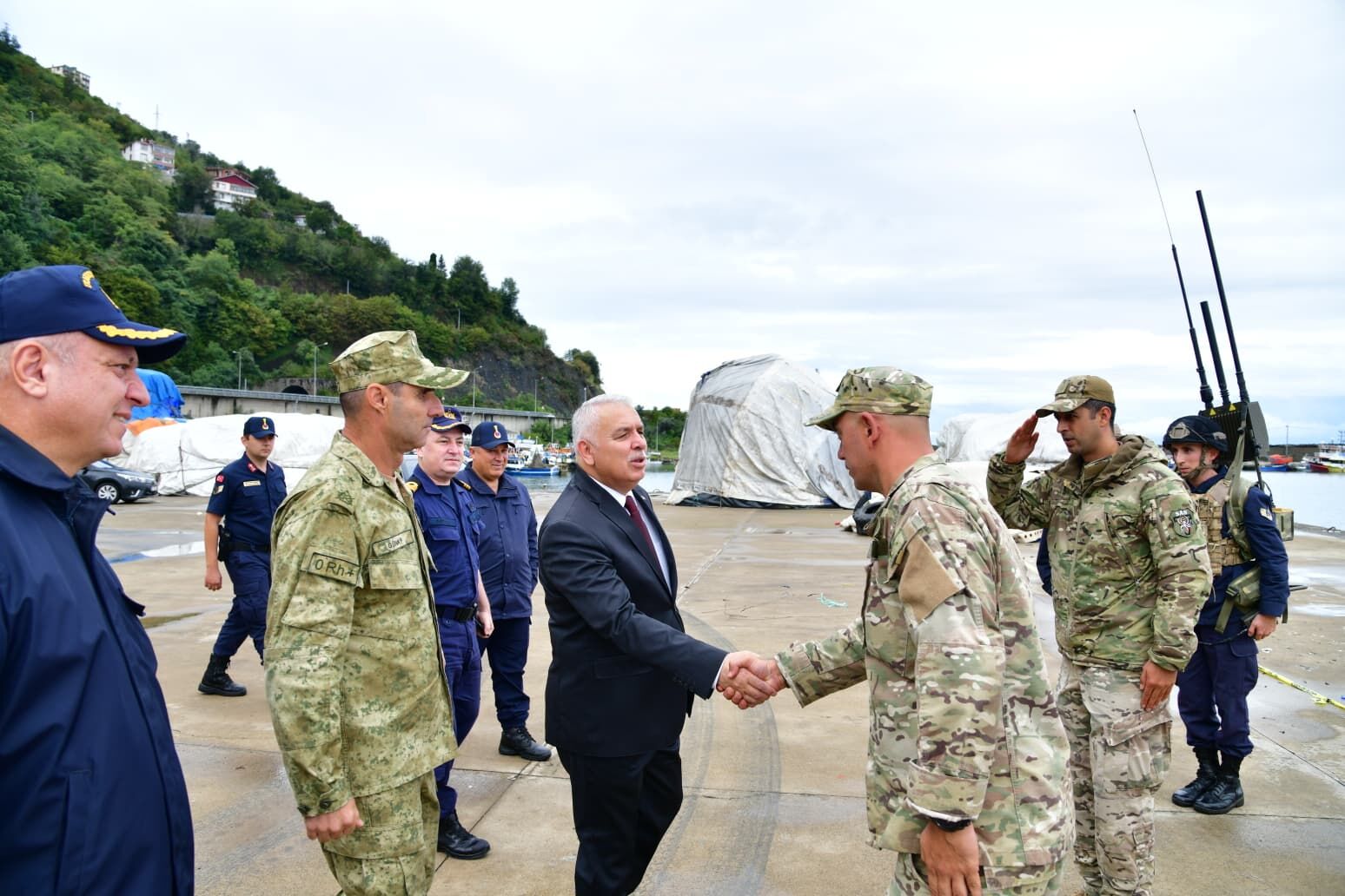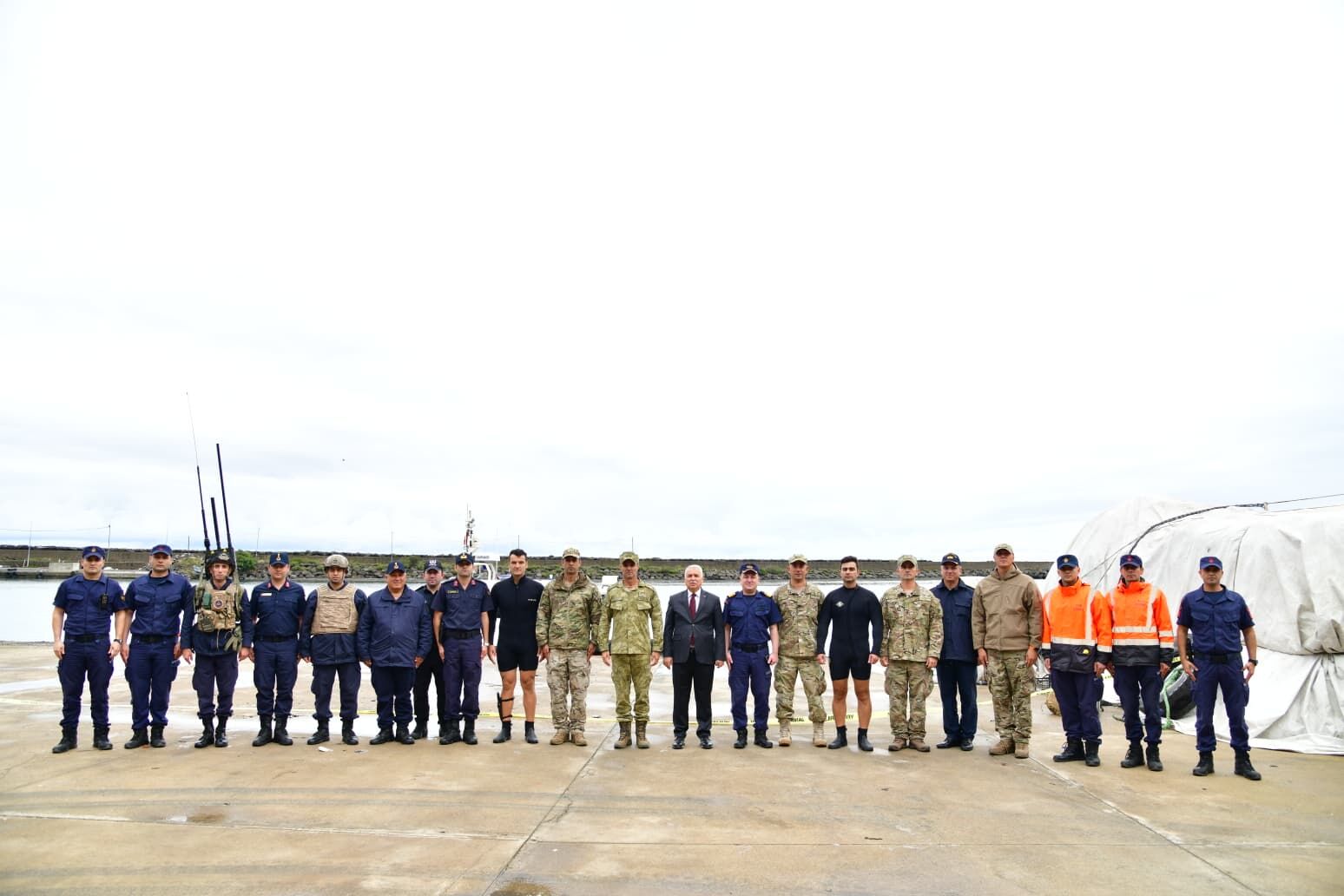 Vali Aziz Yıldırım, imha çalışmalarını yürüten güvenlik güçlerini ziyaret ederek Sahil Güvenlik Doğu Karadeniz Grup Komutanı SG Binbaşı Aytaç Bayırlı ve diğer yetkililerden bilgi aldı.