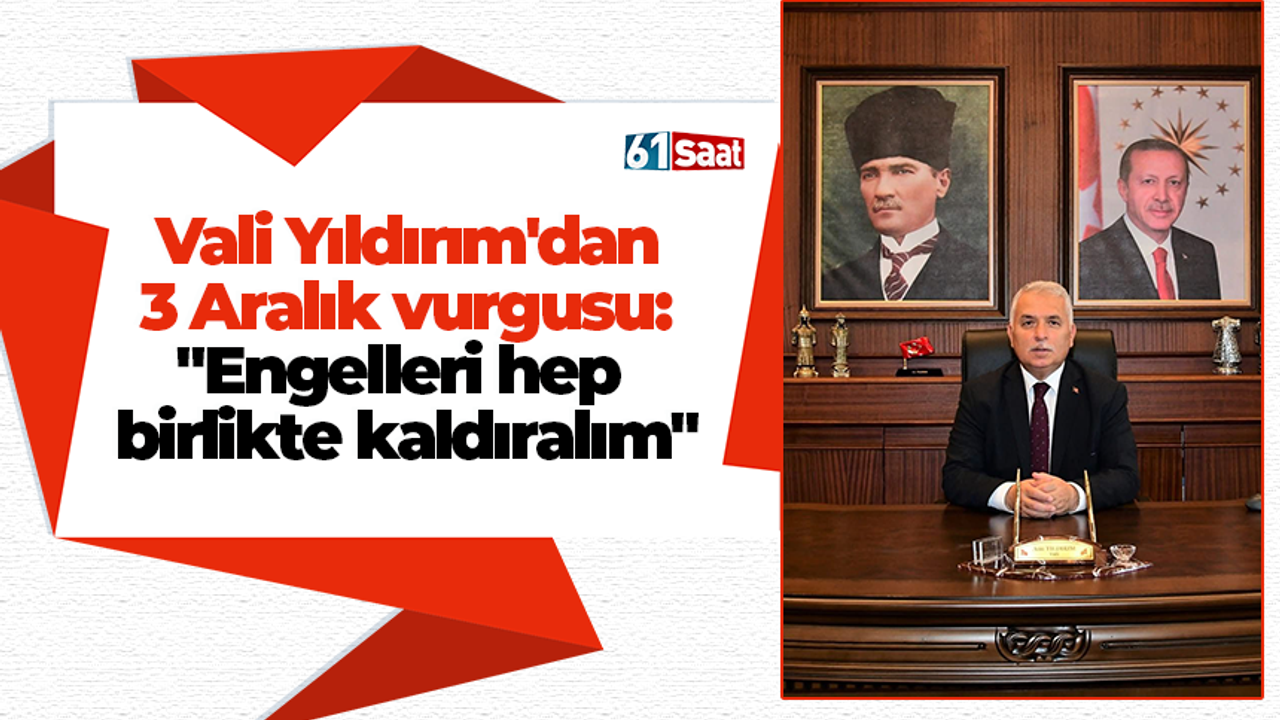 Vali Yıldırım, 3 Aralık Dünya Engelliler Günü dolayısıyla yayımladığı mesajında, engelli bireylerin toplumsal yaşama tam katılımının önemine vurgu yaparak, bunun bir merhamet gösterisi değil, toplumsal bir sorumluluk ve insanlık görevi olduğunu belirtti.