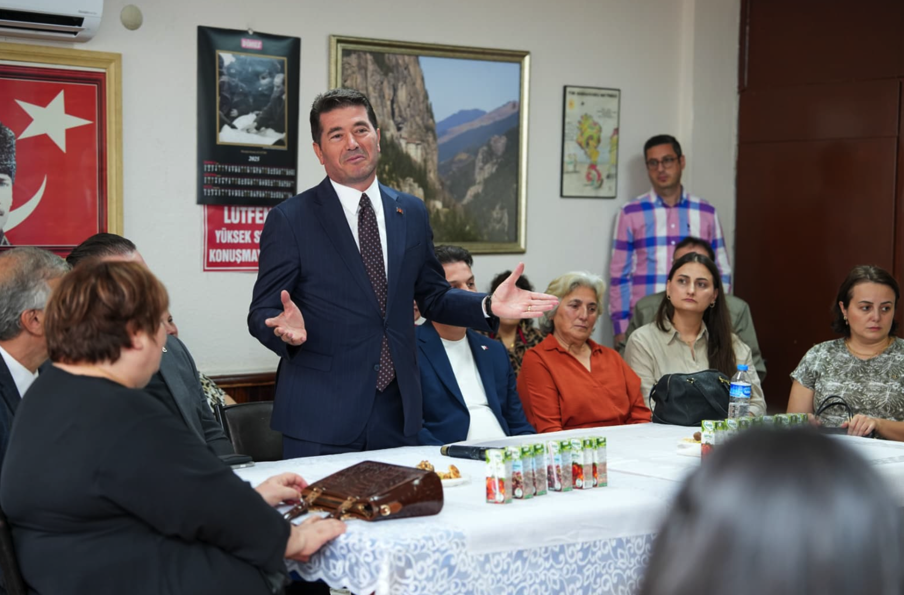 “Dostlar sofrasında hepinizi saygı ve sevgiyle selamlıyorum” diyerek konuşmasına başlayan Başkan Kaya, “Bilmem nedendir, o derenin, o yörenin çocuğu olduğum için midir, yoksa Maçkamız Cumhuriyetin, Atatürkçülerin kalesi olduğu için midir, buraya her geldiğimde içim ayrı bir mutlulukla doluyor. Sıcak karşılamanız için hepinize çok teşekkür ediyorum. Volkan Konak, müthiş bir mücadele adamıydı. Evet, yiğit bir sanatçıydı, Mustafa Kemal’in yol arkadaşıydı, Cumhuriyet değerlerine gönülden bağlıydı… Birçok insan da bu değerlere bağlı olmasına rağmen birtakım kaygılarla bunları ifade edemiyor. Ama Volkan Konak yiğitçe, dimdik durarak bunların mücadelesini verdi. Yaşadığı sürece mücadele insanı oldu ve geriye çok değerli bir miras bıraktı. O mirası, o bayrağı, onun yol arkadaşları olarak bizler devraldık. Bu topraklar bizim vatanımız olduğu sürece sonsuza kadar o onurlu bayrağı hep birlikte dalgalandıracağız, bu hepimizin boynunun borcudur” şeklinde konuştu.