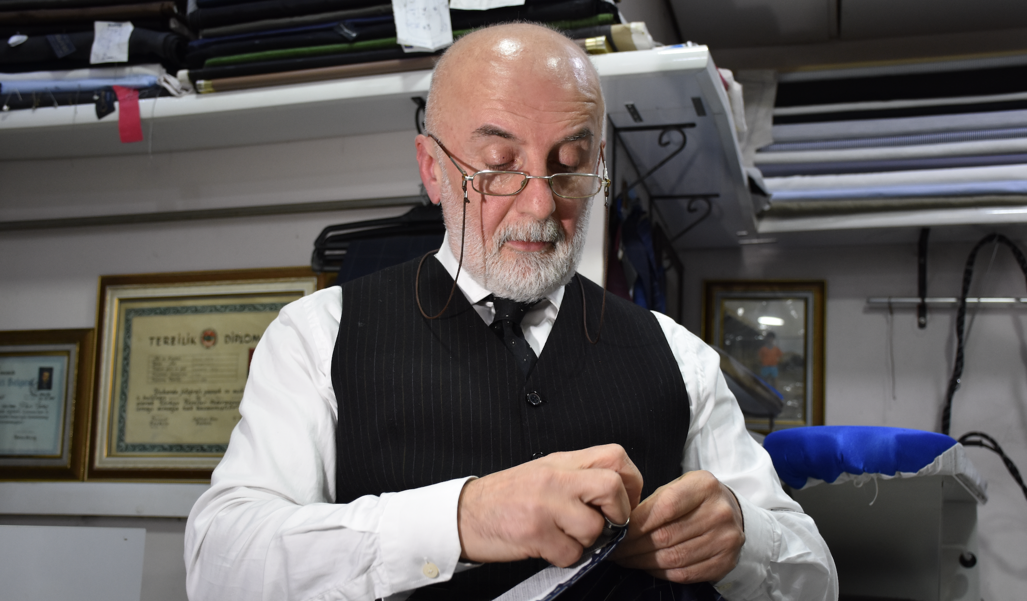 Terzi Fikri İpekçioğlu, AA muhabirine, mesleğini ilkokuldan sonra 11 yaşında yanında çıraklığa başladığı amcası Ethem İpekçioğlu'ndan öğrendiğini söyledi.