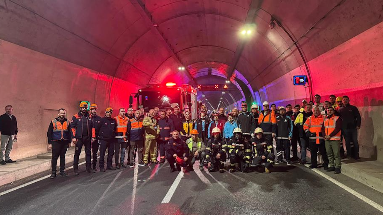 Karayolları 10. Bölge Müdürlüğü koordinesinde tünel işletme yönetmeliğince gerçekleştirilen tatbikatta, senaryo gereği çıkan yangına müdahale edildi.