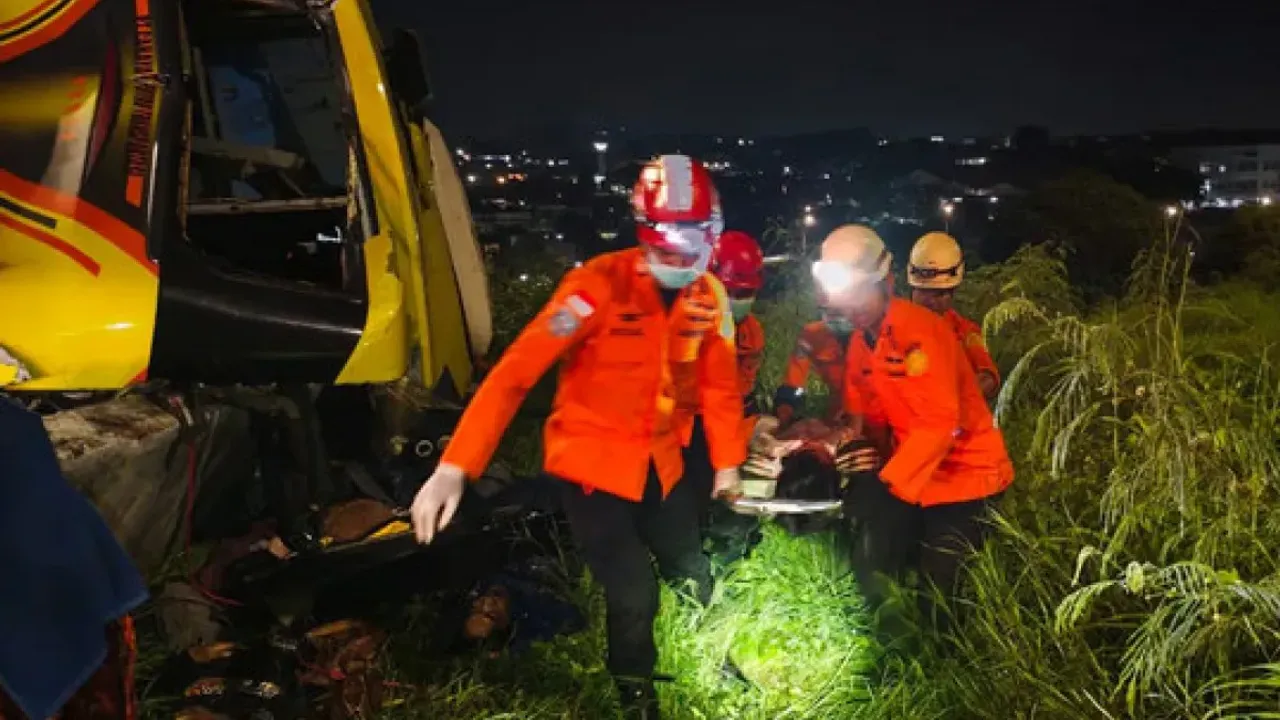 Arama kurtarma yetkilisi Budiono, şehirler arası 34 yolcu taşıyan otobüsün virajlı bir yolda devrildiğini, bazı yolcuların otobüs gövdesiyle bariyer arasında sıkıştığını belirtti.