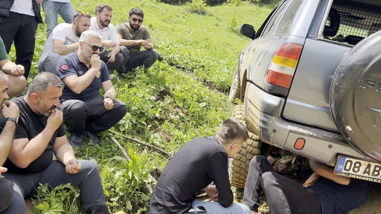 Şavşat Arsiyan Yaylasına düzenlenen gezide Artvin Offraod Kulüp Başkanı Zafer Sinir’in aracı arızalanınca yolda kaldı. Geziye katılan arkadaşları Sinir’e yardım etmek yerine aracın başına toplanıp çekirdek çitleyerek izlediler. Maç izler gibi arkadaşları izleyen offroad tutkunların bu komik görüntüleri sosyal medyada büyük ilgili gördü.