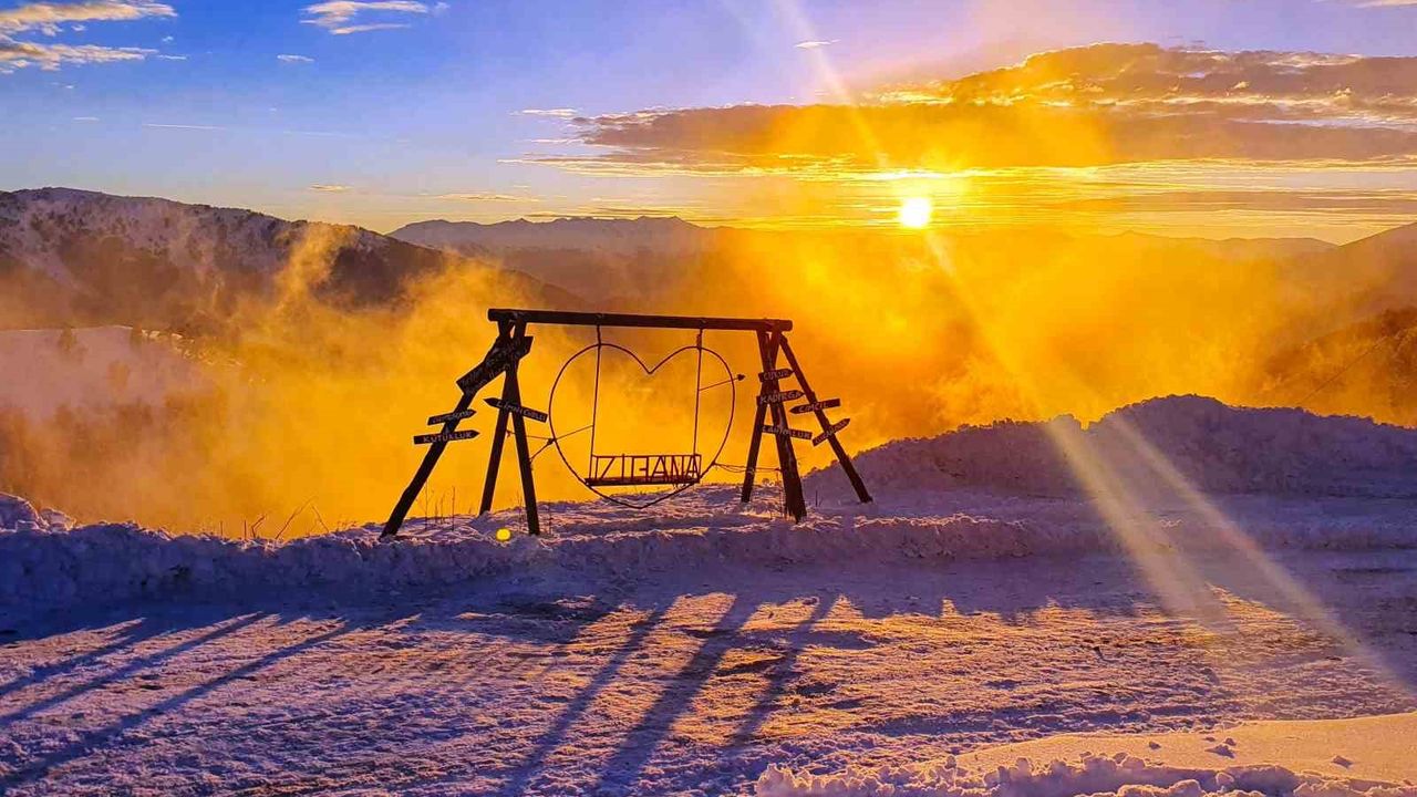 Zigana Dağında gün batımında çekilen fotoğraflar doğanın ihtişamını ölümsüzleştirirken, bölgede bulunan dev salıncaklar da alanın manzarasını panoramik olarak izleme imkanı sunuyor.
